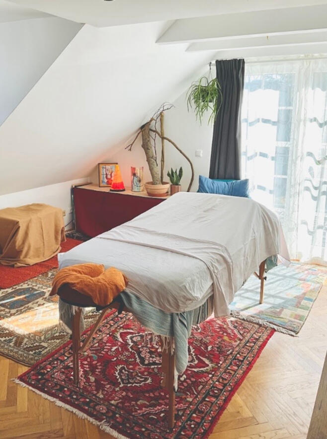 Ich arbeite mit einer achtsamen Massageform, die Körper und Geist gleichermaßen anspricht. Wenn der Geist zur Ruhe kommt, kann der Körper loslassen – Verspannungen lösen sich, und die Wahrnehmung des eigenen Körpers wird gefördert.